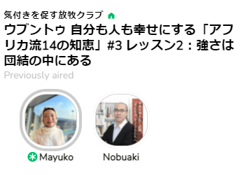 昨日はClubhouseのコーチング部屋でした。ウブントゥ「アフリカ流14の知恵」からLesson2です。