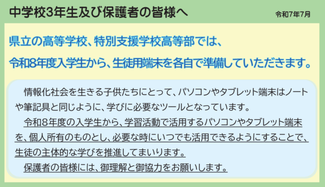 来年からは県立高校のタブレットが自己負担に!? いきなりのニュースに驚きました!