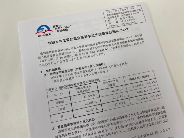 令和4年度愛知県公立高校入試の定員が発表されました! 16クラス、640人増と8年ぶりの増加、あれ少子化は?