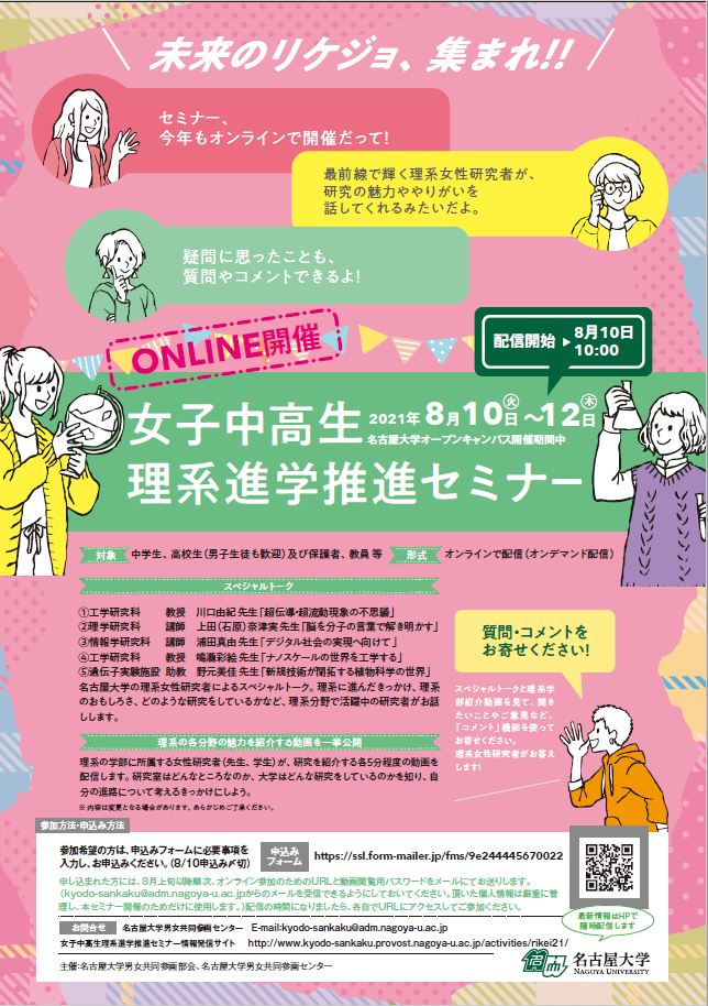 未来のリケジョ集まれ! 名大がオンラインイベントを開催します!