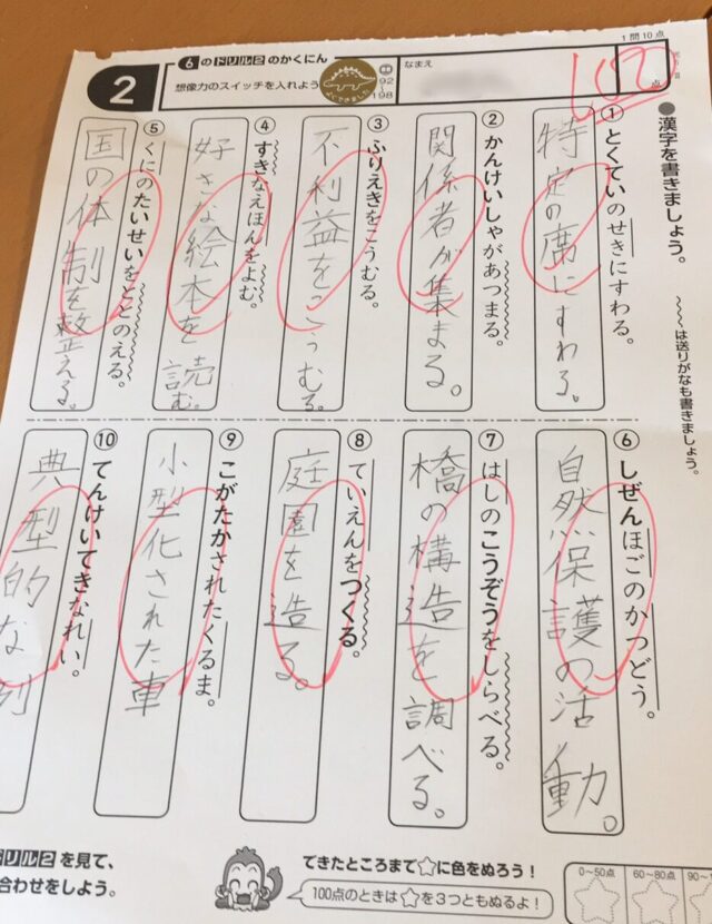 冬期講習で勉強に目覚めたか!? 初めて漢字の小テストで100点をGetしてくれました!