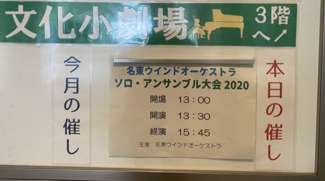 今日は、所属する名東ウインドオーケストラのソロ・アンサンブル演奏会でした。