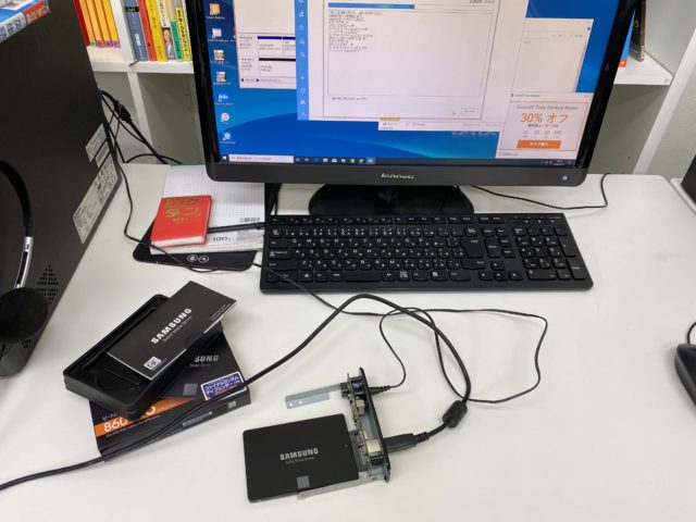 クローン作業さえうまくいくようになれば、あとは、流れ作業で、順次ハードディスクから、SSDへのクローン作業をおこない、終わった後、PCを分解して、ハードディスクの場所に、SSDを搭載して作業は完了です。