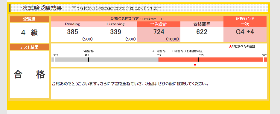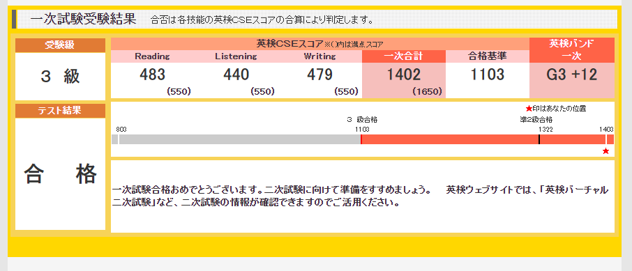 英検の一次試験の合格発表がありました! 結果は・・・