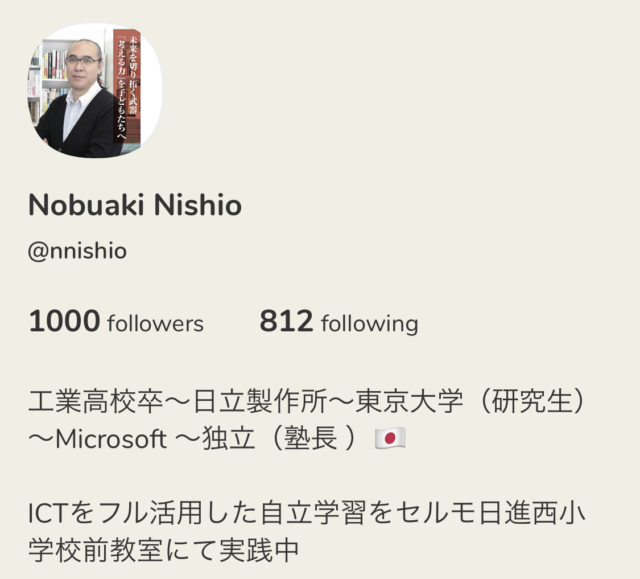 ピッタリ1,000人のときは、表示が1000 followers という表記になりますね。